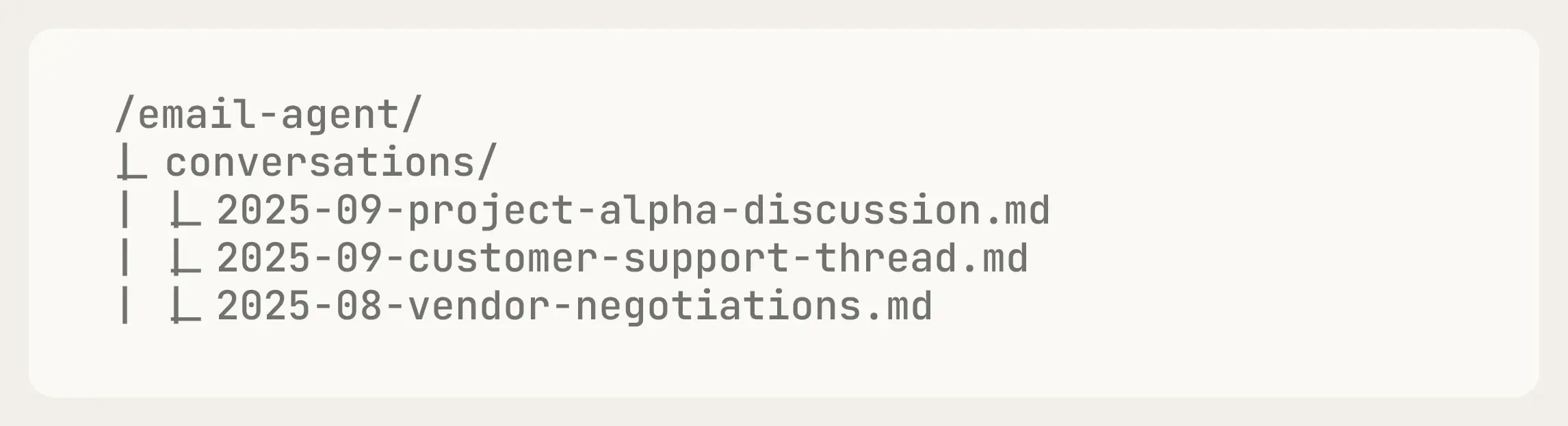 我们的邮件智能体可以把历史对话存放在名为“Conversations”的文件夹中。当用户提问时,它就能在这些记录里检索所需的上下文。