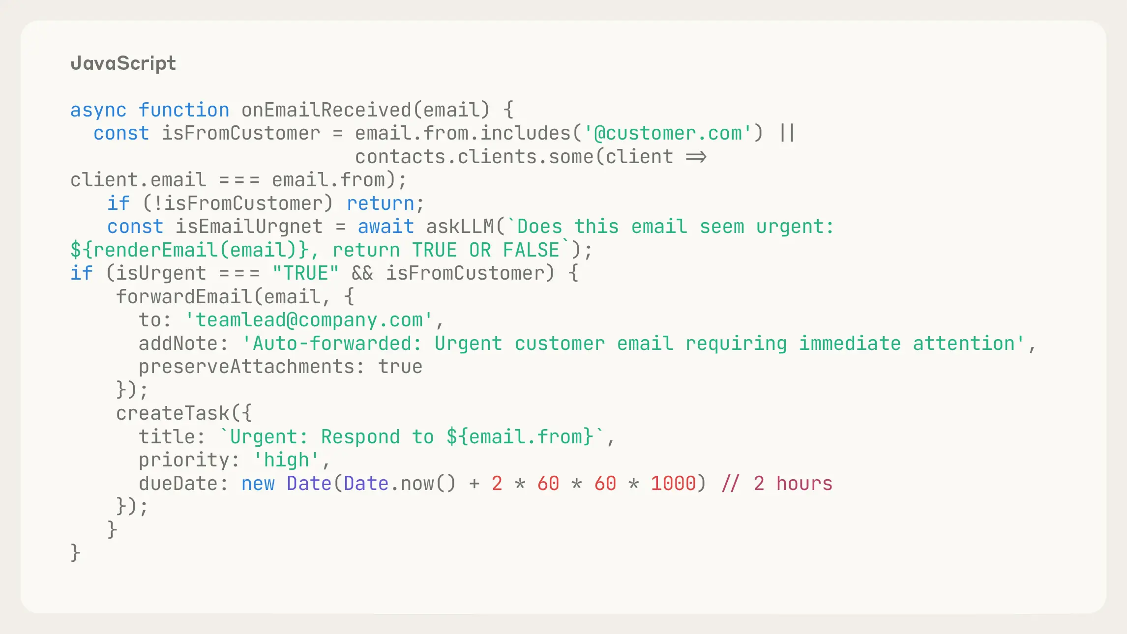 在邮件智能体中,我们可能希望允许用户为入站邮件创建规则。为此,我们可以编写代码在相应事件触发时运行: