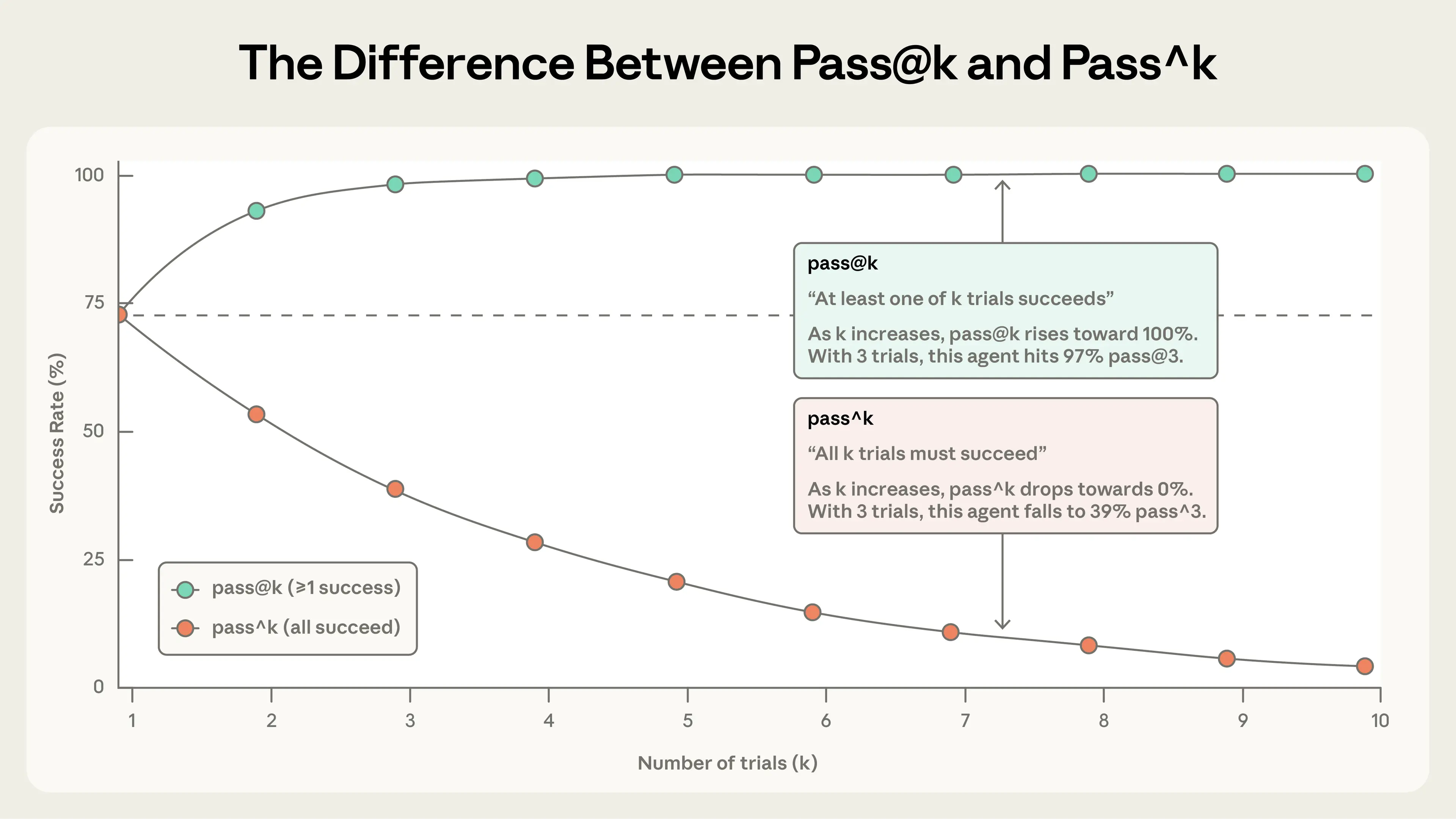 - 每次尝试一个任务称为一次试次(trial)。由于模型输出在不同运行间会变化,我们会运行多次试次以获得更一致的结果。