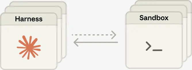 我们最终采用的解决方案,是将我们所认为的“大脑”(Claude 及其 harness)与“双手”(执行动作的 sandbox 和工具)以及“session”(session 事件日志)解耦。每一部分都变成了一个对其他部分假设极少的接口,并且每一部分都可以独立失败或被替换。